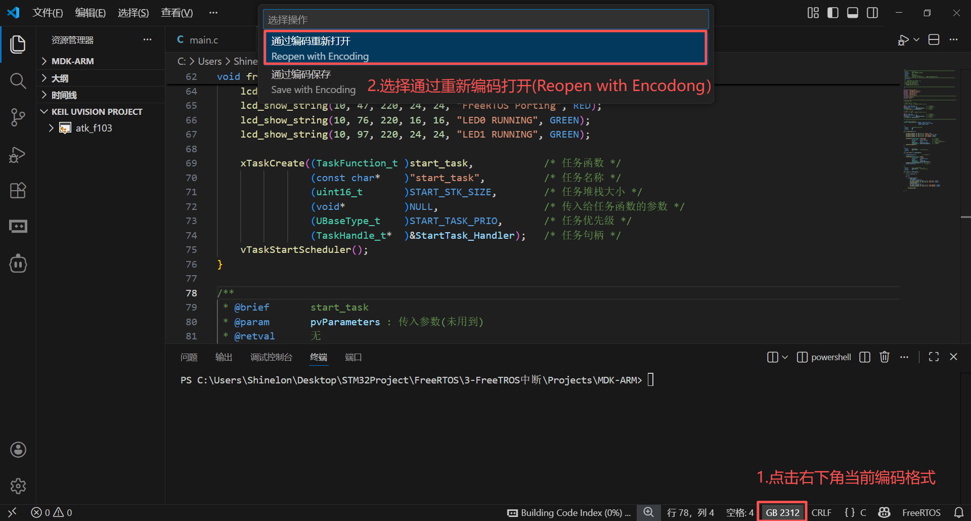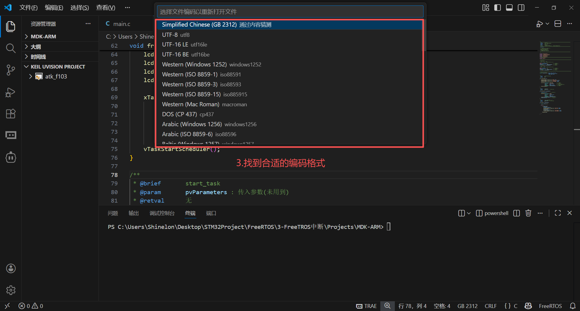 - 在主页面点击左下角的当前编码格式(我的是GB2312,你们的可能不一样)