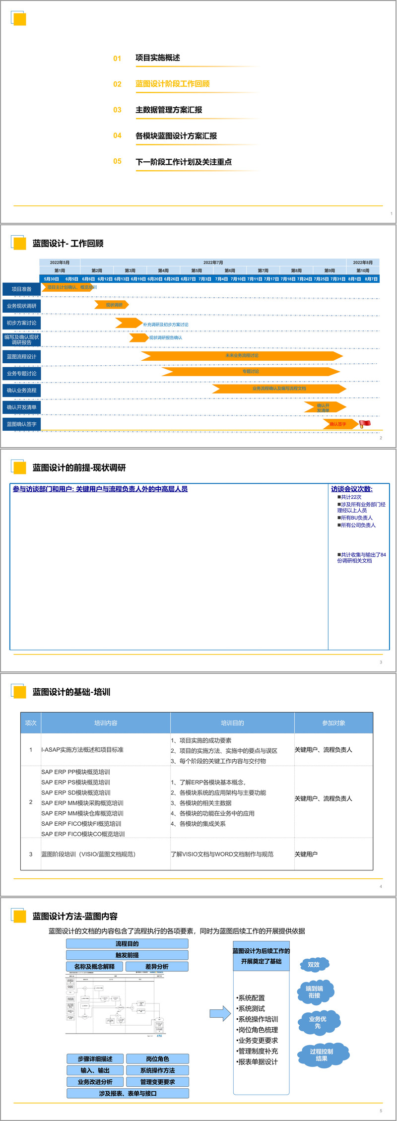 蓝图设计阶段历时约两个月,成果丰硕。团队不仅完成了全面的业务现状调研和未来业务流程设计,还输出了多项关键交付物: