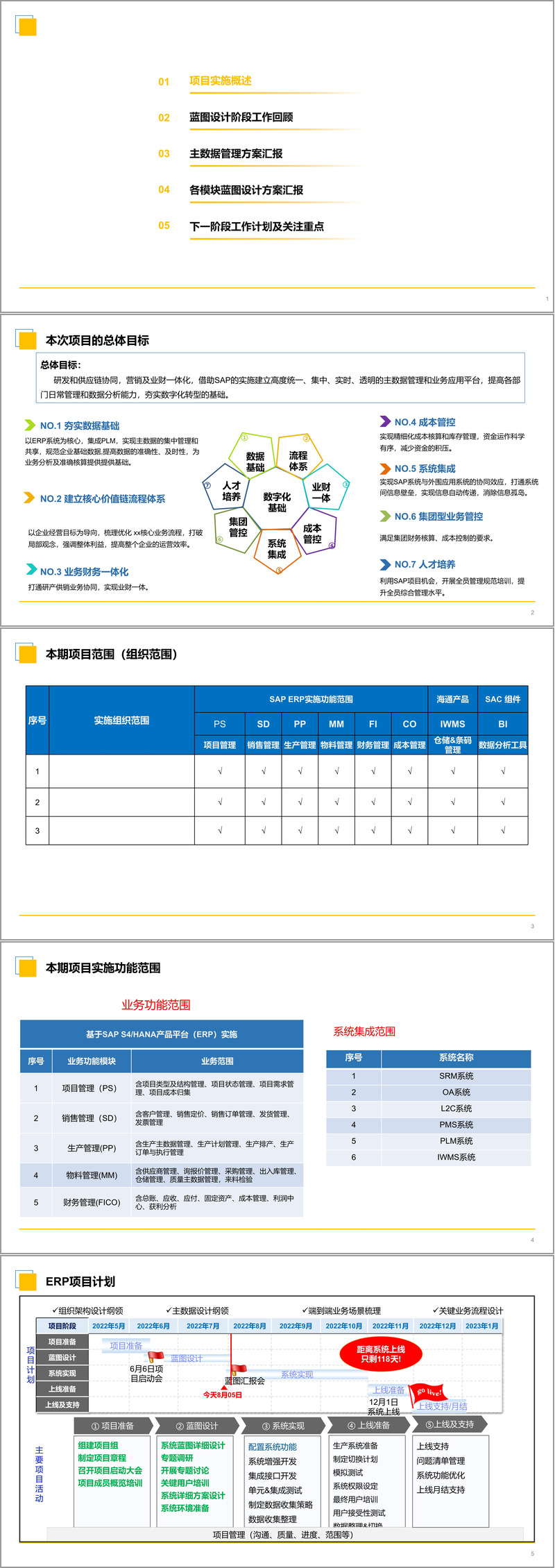 项目计划严格遵循了经典ERP实施方法论,分为项目准备、蓝图设计、系统实现、上线准备及上线支持五个阶段。文件显示,在蓝图设计阶段,项目团队完成了大量深入细致的工作,为后续系统实现奠定了扎实的基础。