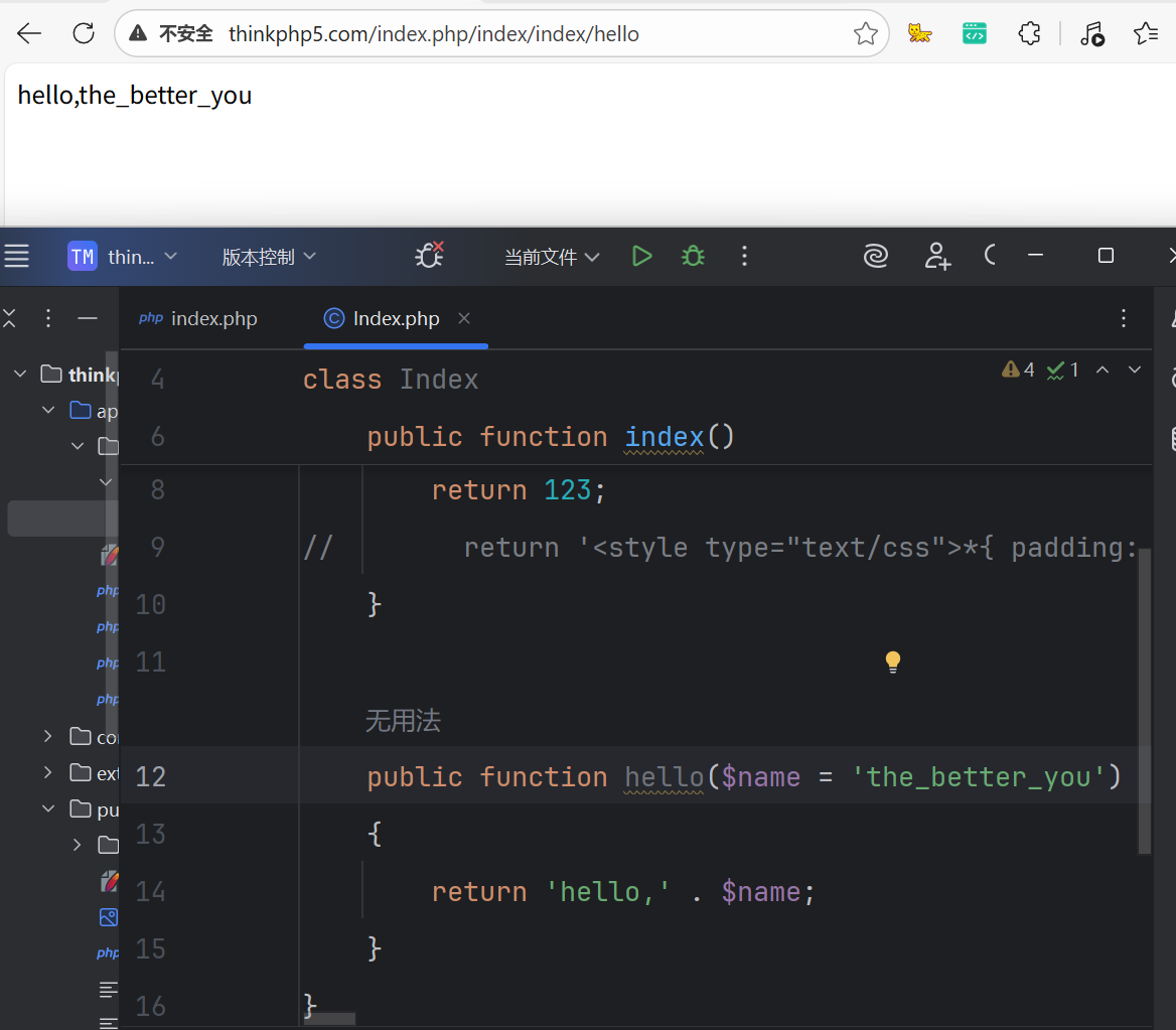 application/ └── index/ ← 模块名 index └── controller/ ← 控制器目录(不参与 URL) └── Index.php ← 控制器文件 index.php / 模块 / 控制器 / 方法 访问:index.php / index / Index / index app\index\controller\Index::index()