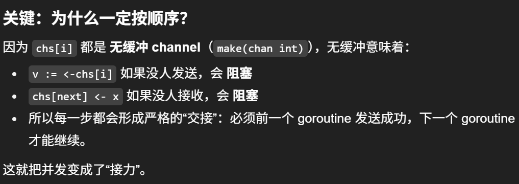 - 先把缓冲区里剩余的数据读完(如果是带缓冲的 channel,或关闭前已经有数据进入缓冲)