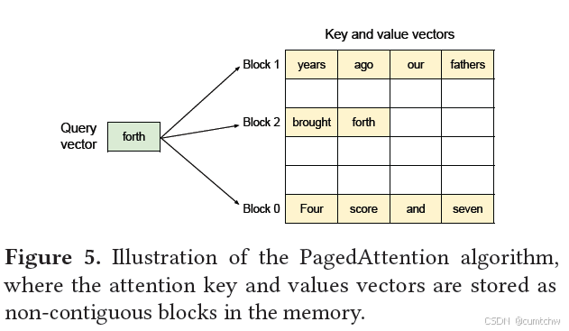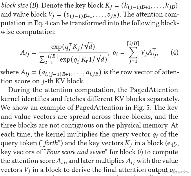 个人理解:就是说受到操作系统中分页技术管理虚拟内存方法的启发,然后这里也是将KV 缓存划分成多个快,然后这里还有个比喻