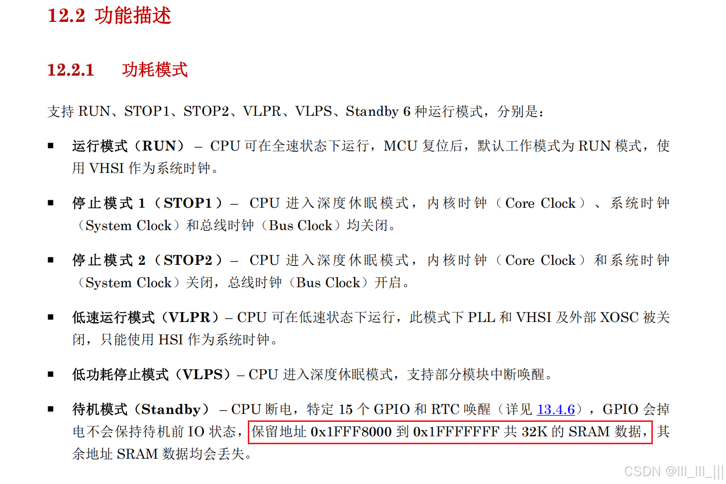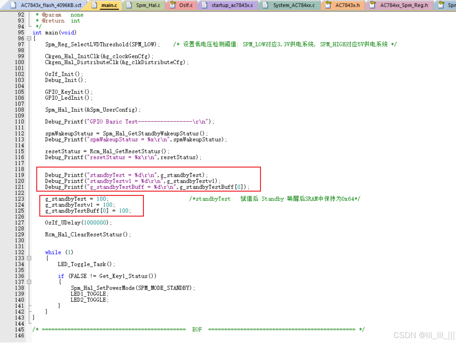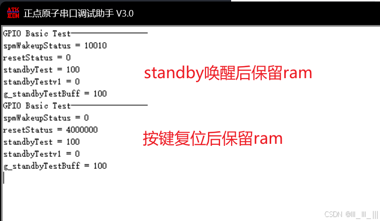 g_standbyTest = 100; /*standbyTest 赋值后 Standby 唤醒后SRAM中保持为0x64*/