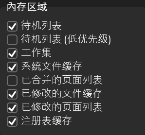 清理项:勾选待机列表等工作集等
