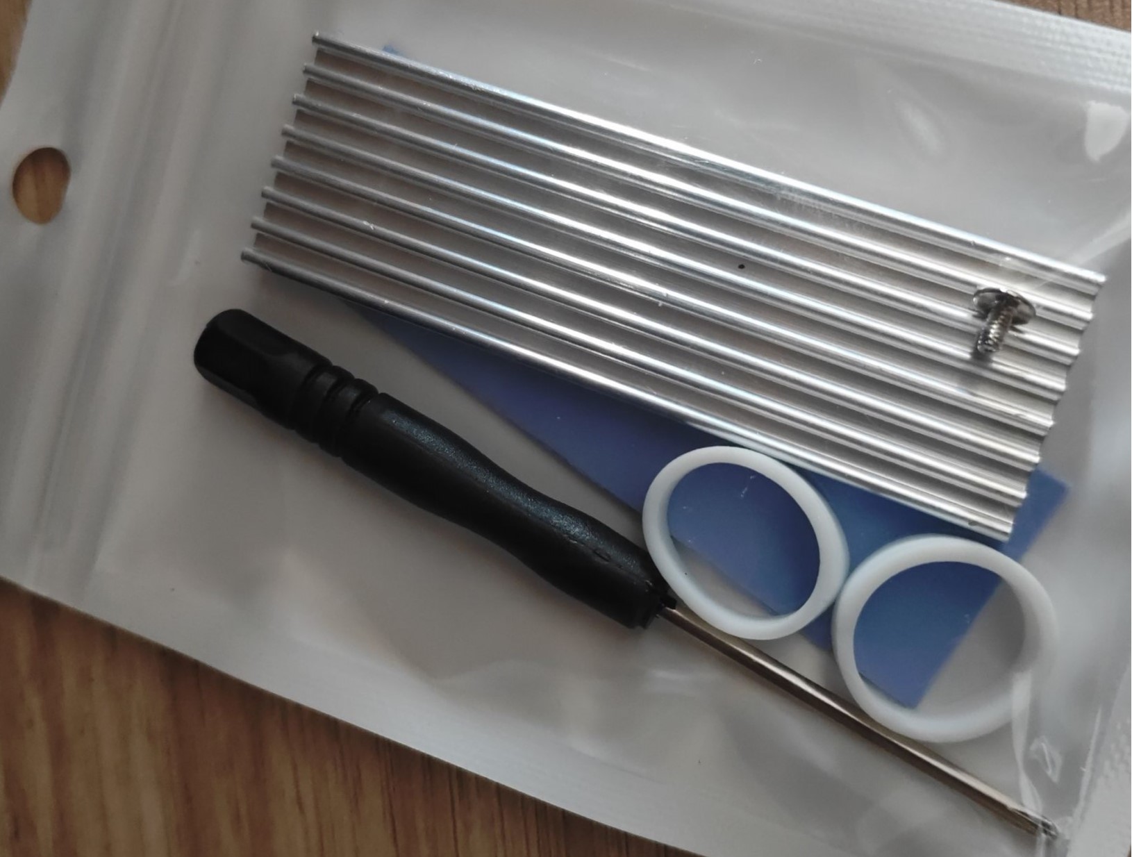这次我购买的是一块散片固态硬盘,发货时收到一个装在防静电袋中的硬盘,还有一些额外配件。