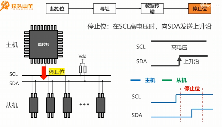 主机在SCL高电压时,向SDA发送上升沿。