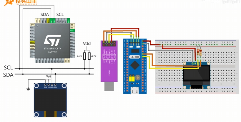 1.江科大套件屏幕内部自带上拉电阻,其市面上大部分带上拉电阻,所以只要直接将I2C、正负极连接到屏幕即可