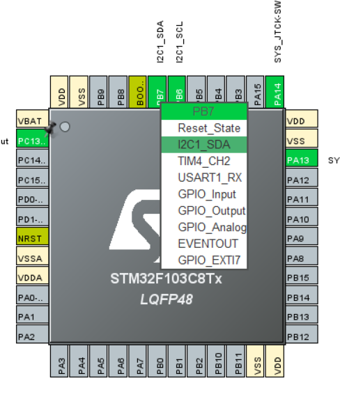 可以发现,CubeMX已经自动帮我们分配了I2C的引脚: