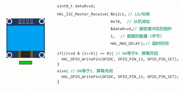 此外,我们还想将板载指示灯当作OLED屏指示灯来使用,当屏幕开启时,点亮这颗LED,