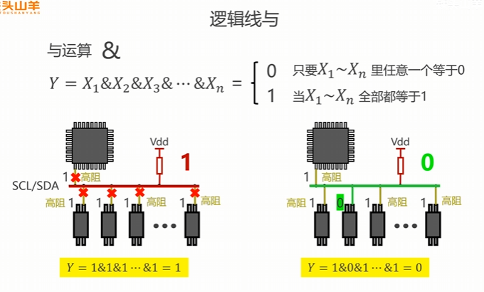 SCL、SDA实现逻辑线与的原理一样,拿一条线来举例: