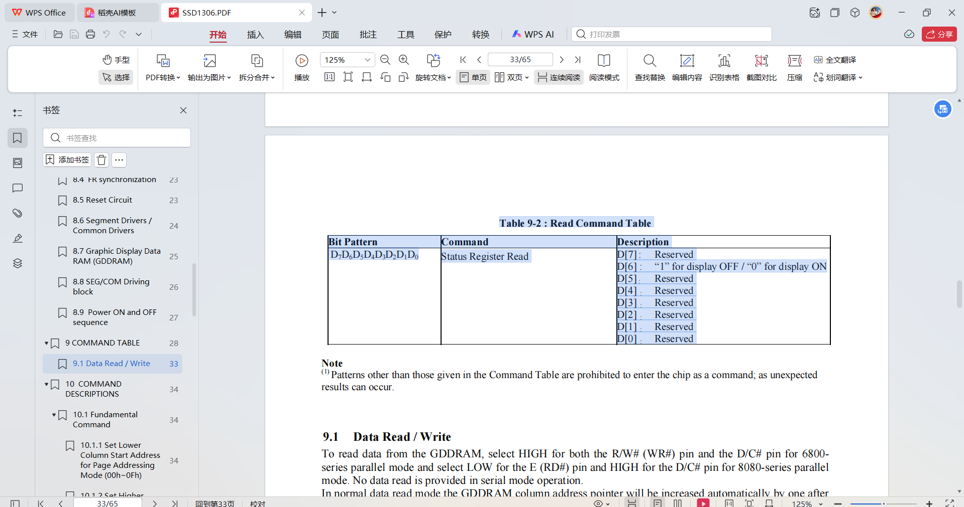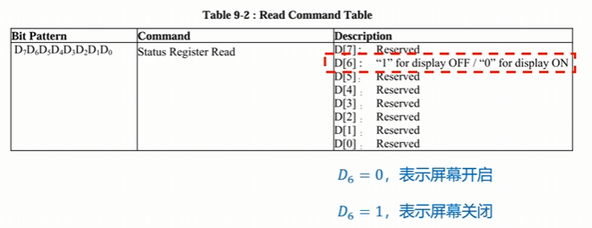 查阅手册可知,这块屏幕有一个状态字,我们便可以利用它来控制LED灯: