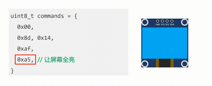 通过I2C总线向屏幕输入如下命令就可以显示: