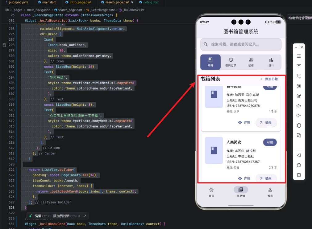 传统图书馆管理系统多为单平台开发,维护和更新成本高。随着 Flutter 的兴起,开发者可以用一套代码实现 Android、iOS、Web 甚至 OpenHarmony 设备上的应用,极大地提升了开发效率。书籍列表模块是图书馆系统的核心功能之一,它承担了书籍展示、分类检索和快速操作的角色,因此需要实现高性能、易维护和用户友好的 UI。