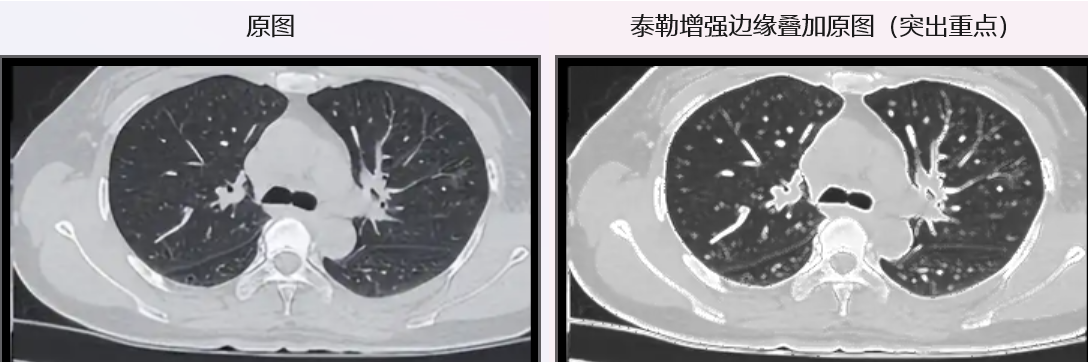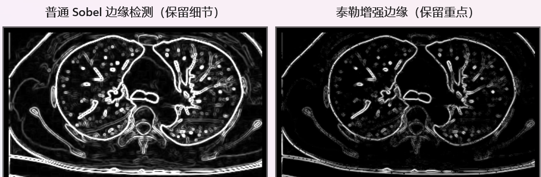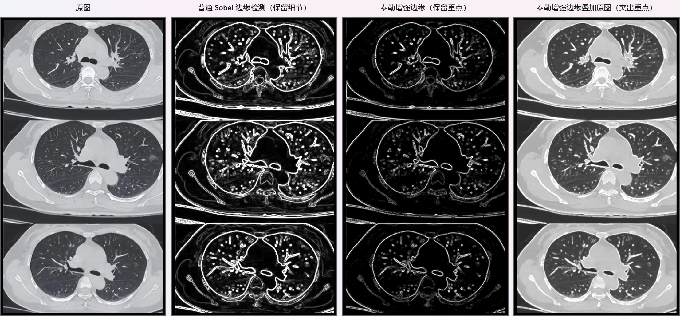 用泰勒级数做CT图像边缘检测,对比了 普通Sobel边缘检测 和 泰勒增强边缘检测 ,核心处理: