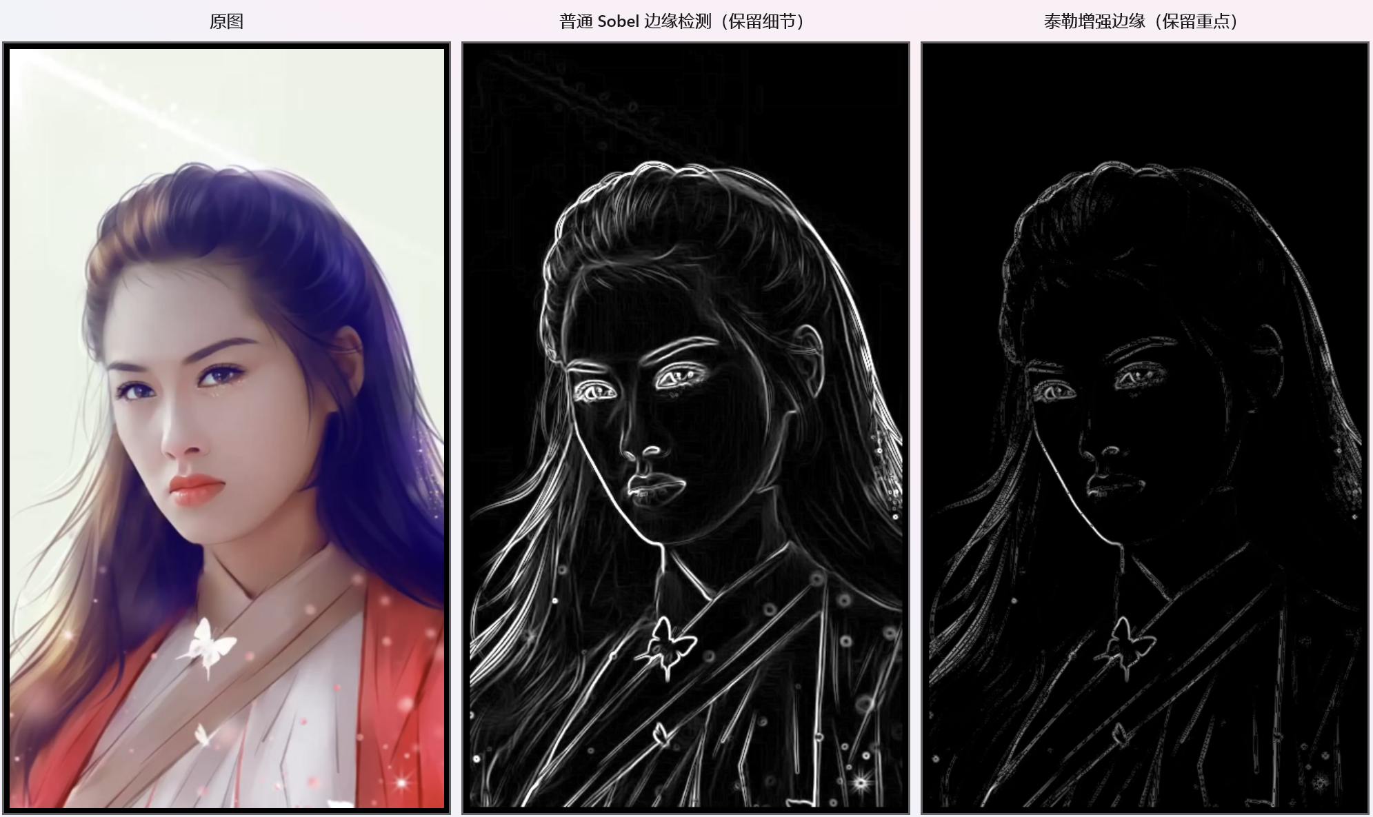 泰勒增强边缘,主动舍弃噪声细节,只强化稳定的真边缘, 线条干净,轮廓突出。