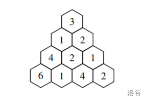 接下来 n 行第 i 行有 i 个整数代表这个三角形。