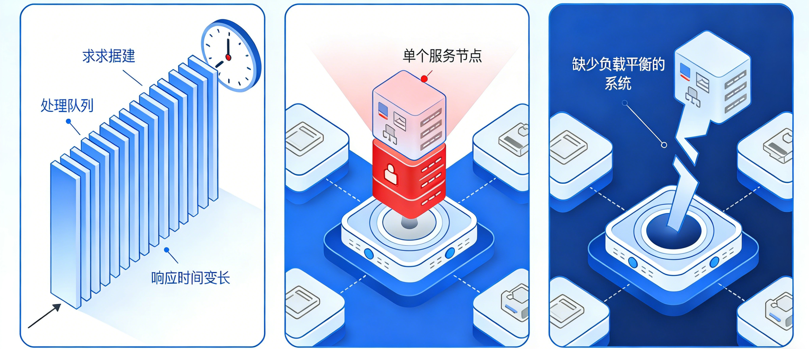 单点故障风险:缺乏负载均衡机制时,单个服务节点可能会成为瓶颈点,影响整个系统的可用性。