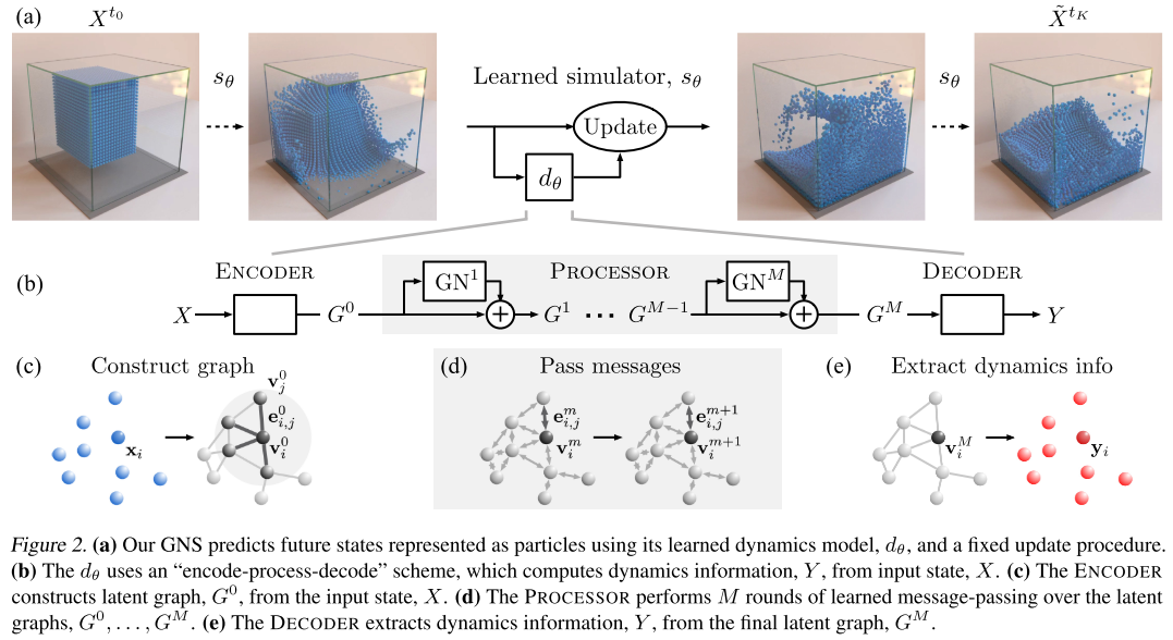 - 消息传递:通过学习的函数模拟粒子间的相互作用