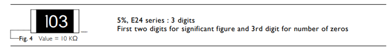 对于0603封装及比其封装大的电阻,电阻的阻值通常以数字形式直接标注在电阻的表面 :