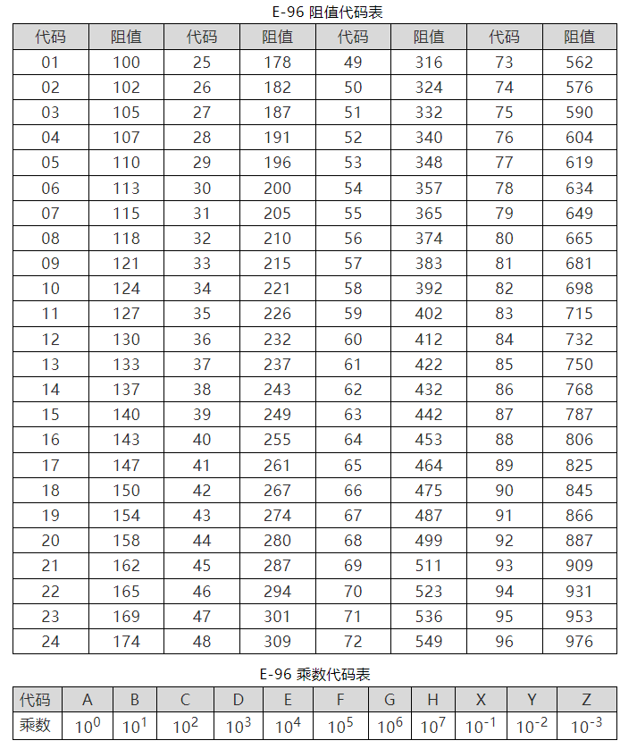 阻值代码表