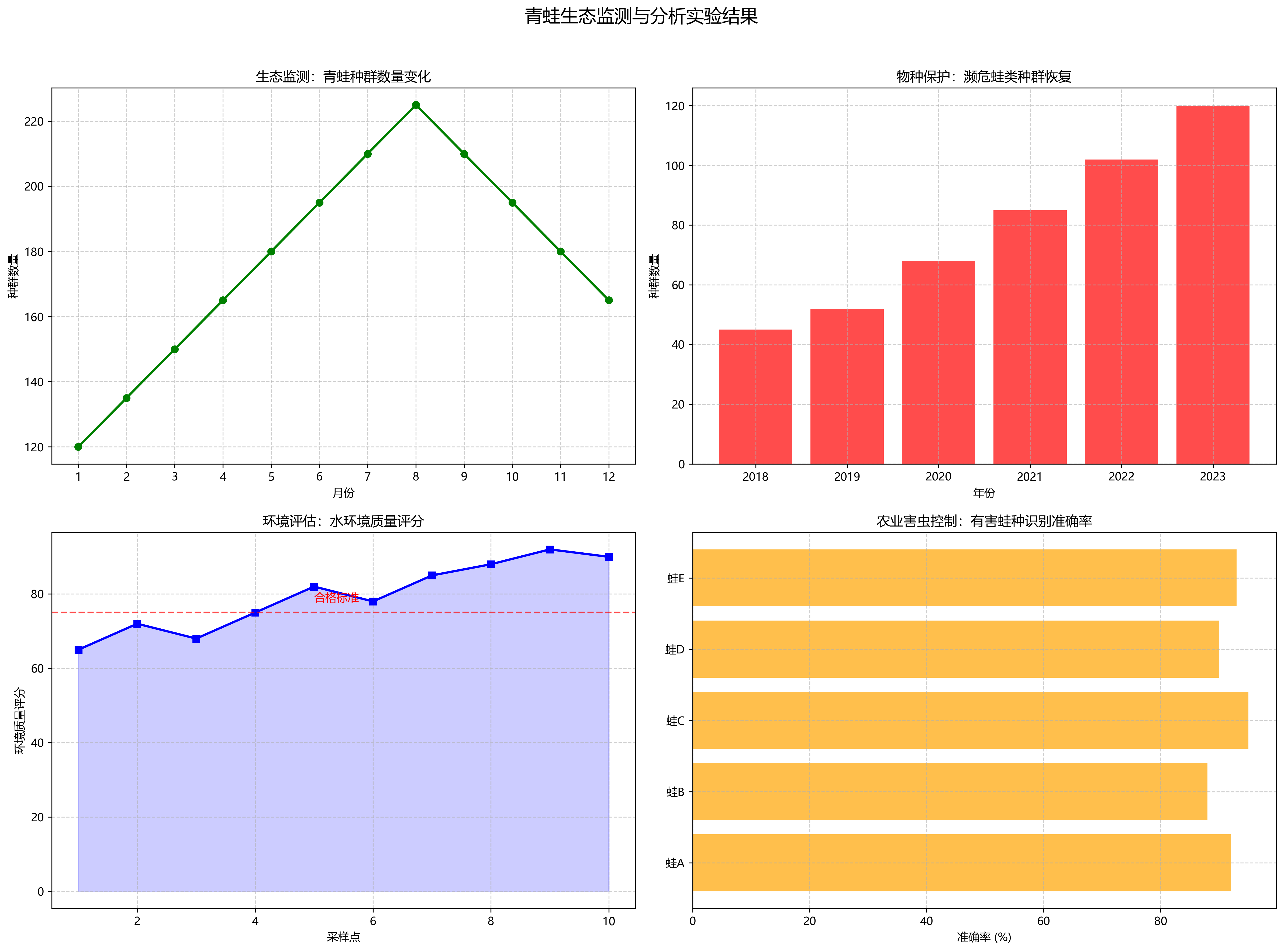 - 环境评估:通过青蛙作为指示物种评估水环境质量