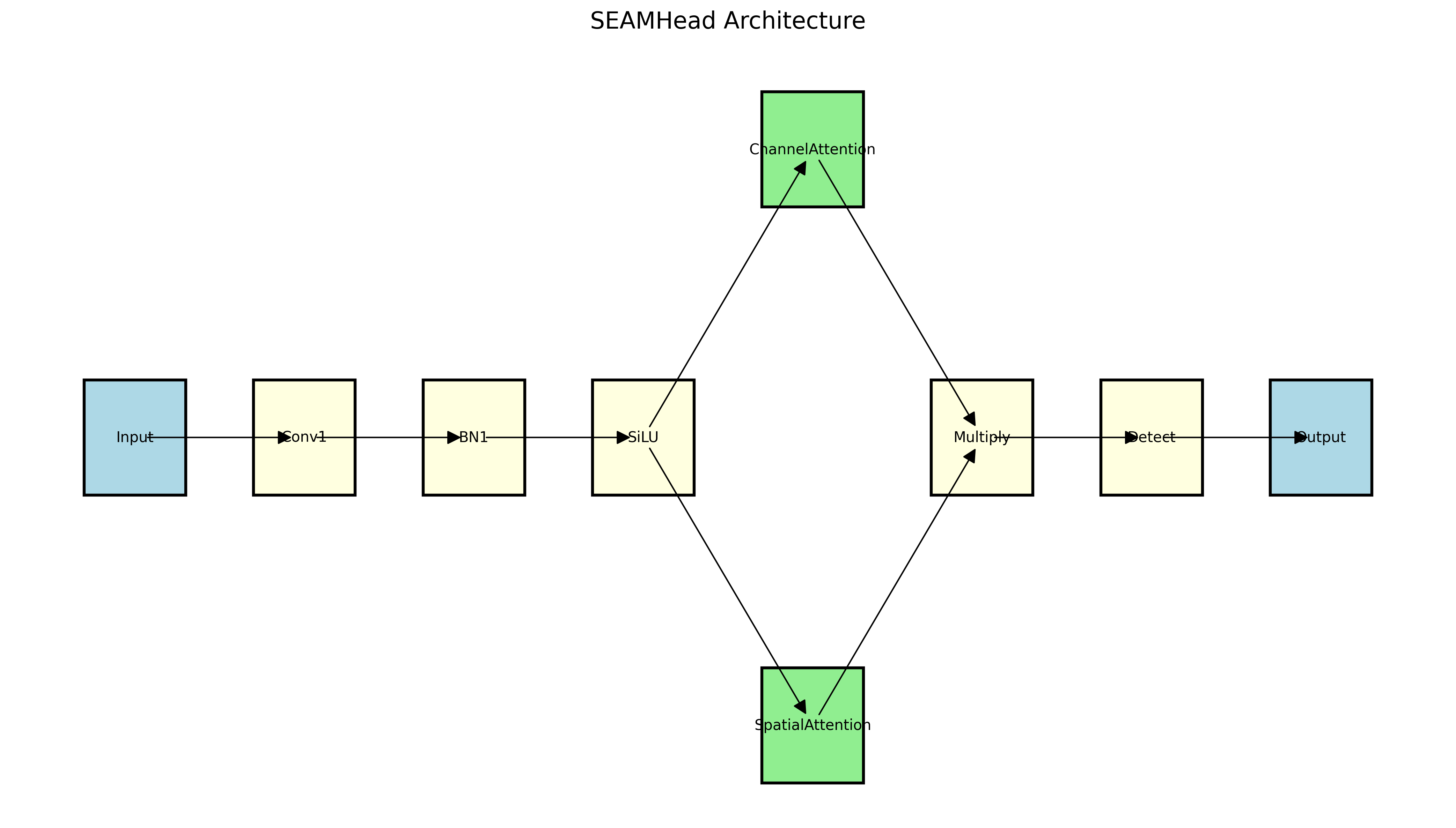 SEAMHead(Squeeze-and-Excitation Attention-based Module Head)是一种基于注意力机制的目标检测头,它通过引入通道注意力和空间注意力,能够更好地关注图像中的重要区域和特征通道。