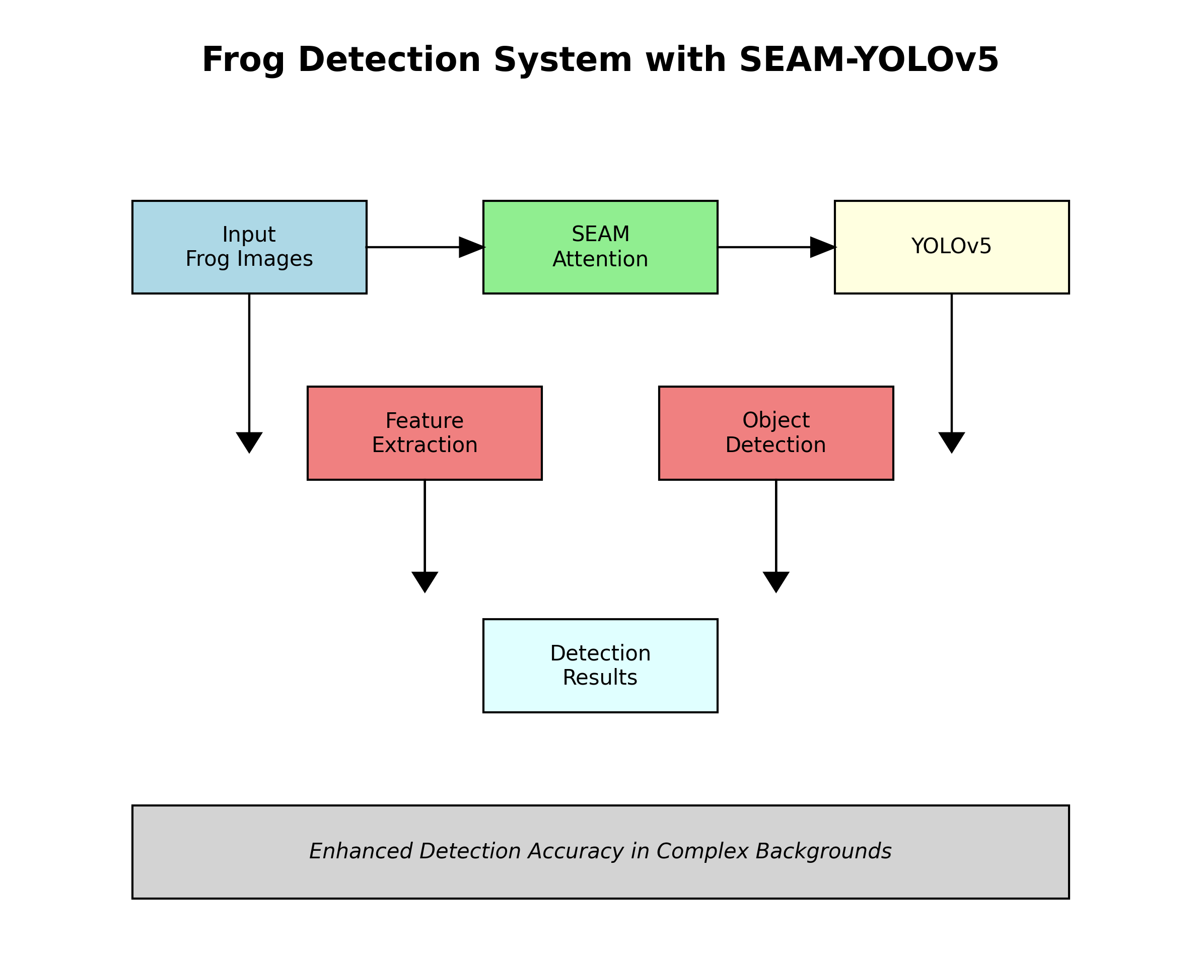 基于YOLOv5的改进,我们提出了SEAMHead(Squeeze-and-Excitation Attention Module Head)模块,该模块结合了通道注意力和空间注意力机制,通过自适应特征增强,提高模型对复杂背景下青蛙目标的检测能力。