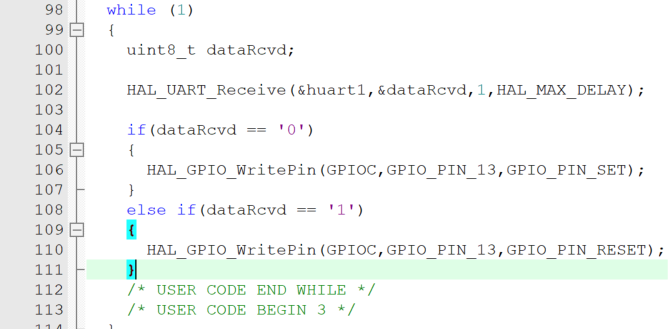 那么如何实现接收到数据并控制灯的亮灭呢?