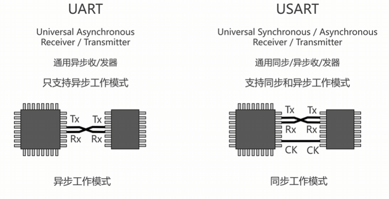 STM32单片机里有UART和USART两种类型的串口: