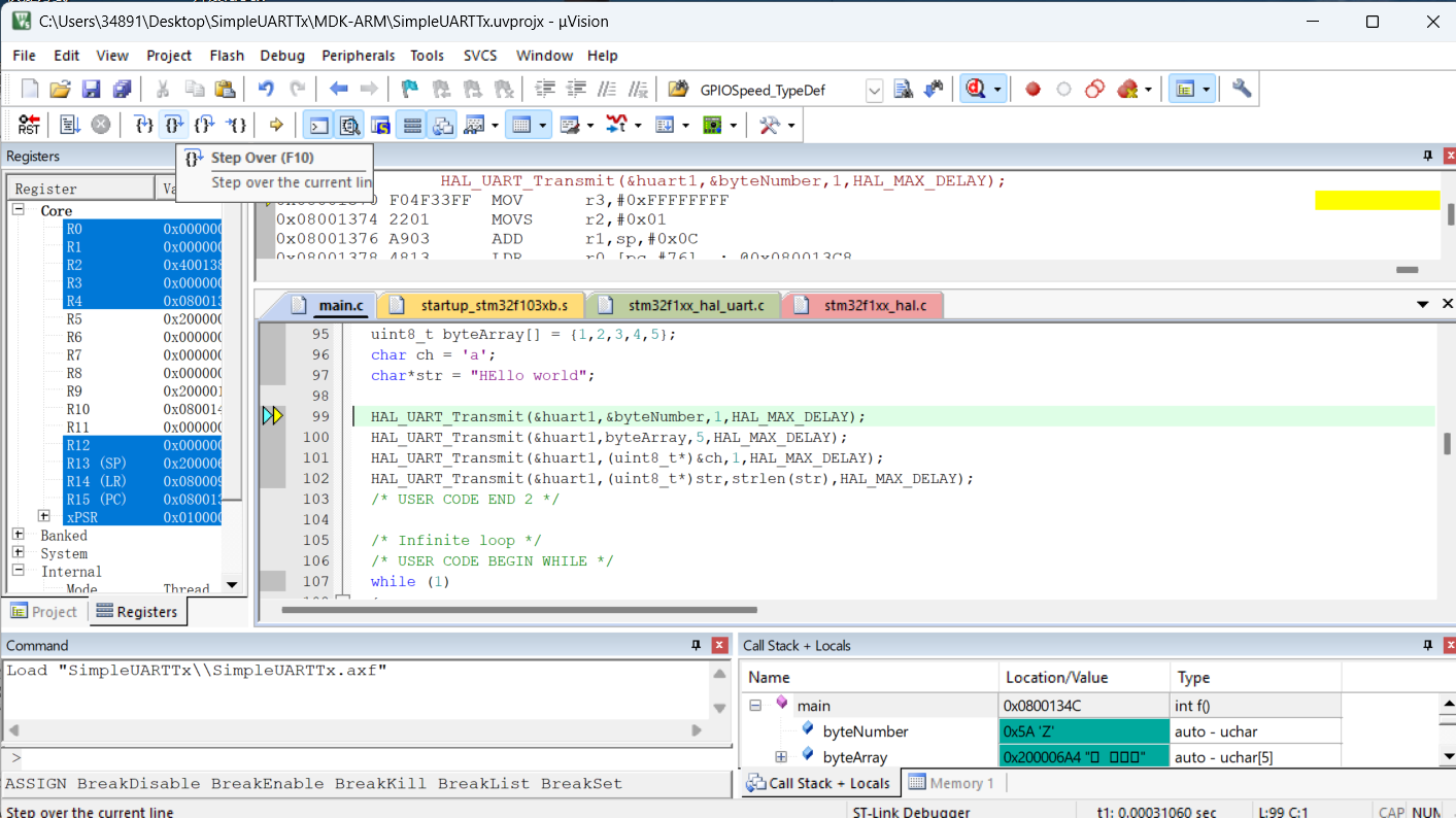 点击单步执行: