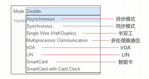 Mode表示工作模式,我们需要为串口选择工作模式: