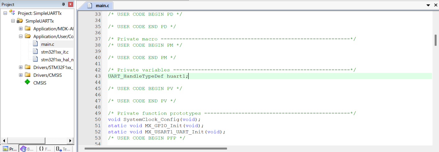 我们只用知道cubeMX给我们生成了一个句柄叫UART1。