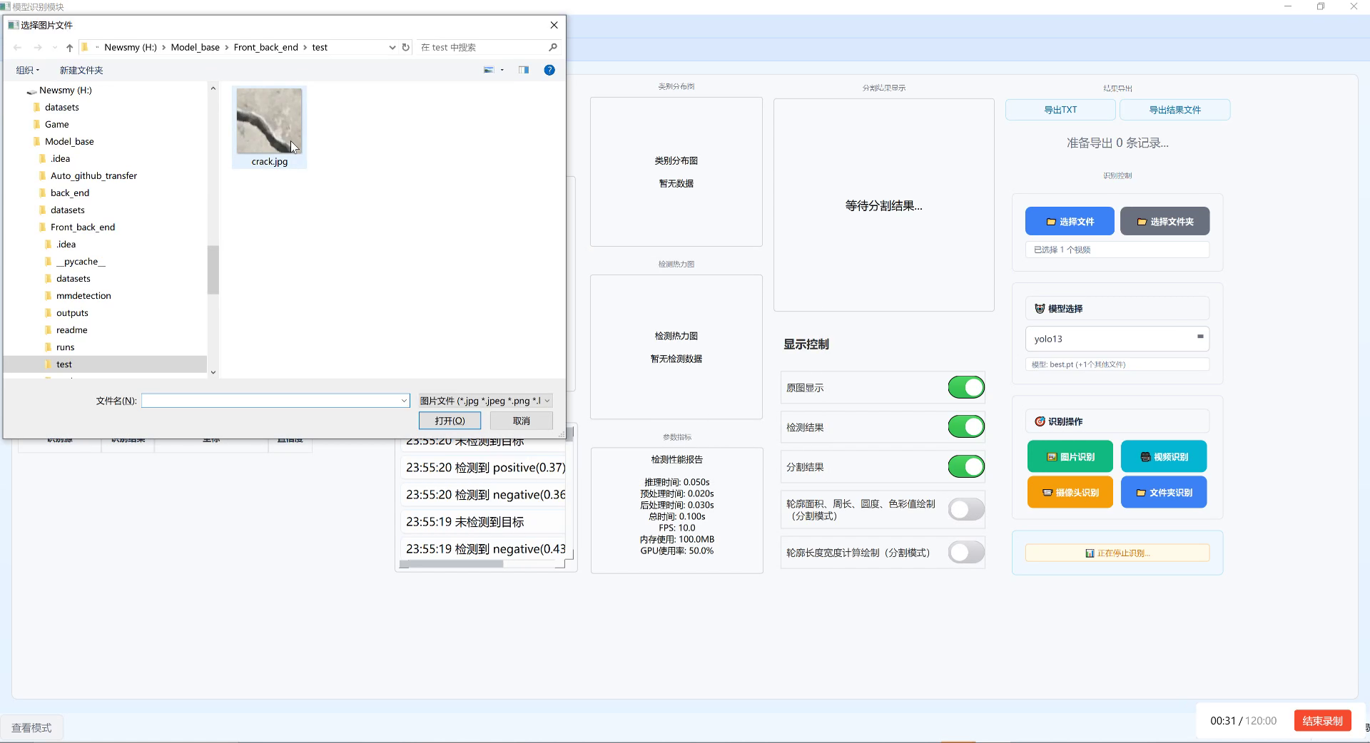 系统采用Python和PyTorch框架实现,具有良好的可扩展性和维护性。为了提高推理速度,我们使用了TensorRT对模型进行优化,使推理速度提升了3倍以上,达到35.6 FPS,满足实时检测需求。