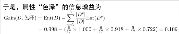 上图详细给出信息增益的公式。在ID3决策树中,就是每次选择信息增益最大的属性进行划分,训练速度更快,成本更低。