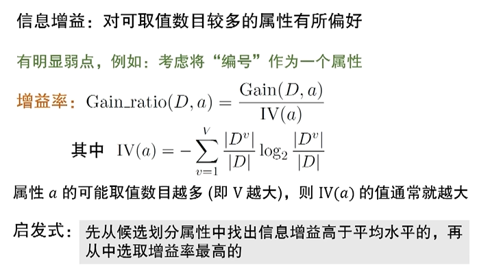 其中分母IV(a)起到了规范化的作用,方便进行数据比较。优化了信息增益对可取值数目较多属性的偏好。