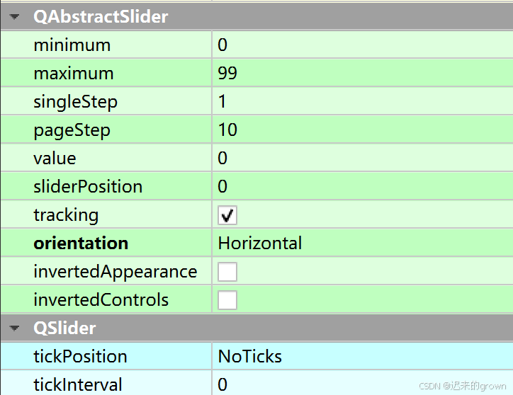 像QDial中的value、minimum、maximum等这些属性在QSlider中也是有的。
