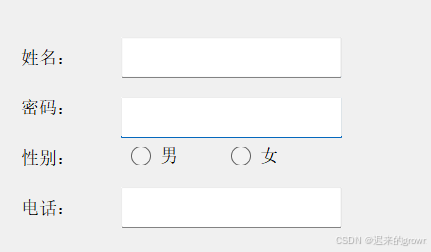 这里就实现 信息收集表:姓名、密码、性别、电话