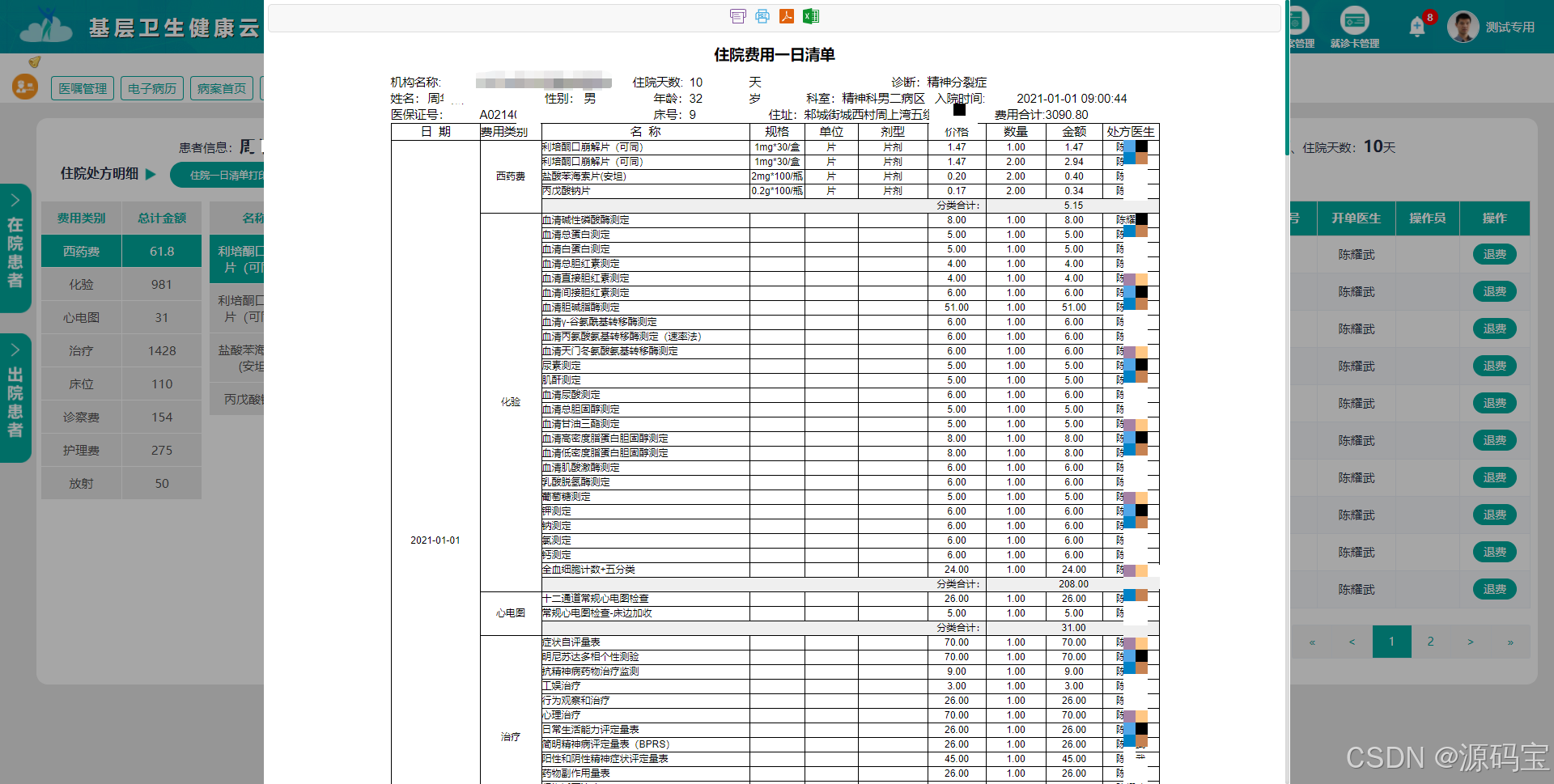 测试门诊流程:挂号→医生开方→收费→发药全链路验证。