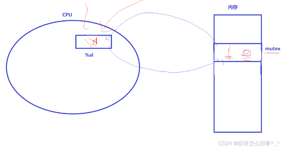 当某一个线程被调度时 先将%al寄存器中的值置为0 之后交换当前线程%al中和mutex的值 若是交换之后%al中的值为1 就可以执行临界区代码 反之线程被阻塞挂起
