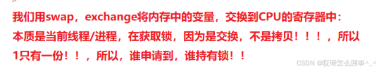 2、在加锁之后 在临界区允许线程切换吗? 答案是允许 因为锁本质上也是代码 但是这不影响 因为当前持有锁的线程没有释放锁 即便这个线程被切换走了 其他的线程也不能被CPU调度 必须等待这个线程回来执行完代码 释放锁之后才能进行锁的竞争之后 某一个线程进入临界区