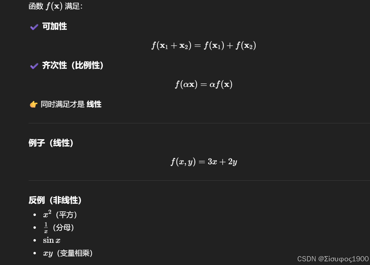 量和量之间安装比例的成直线的关系 参数只一次 → 线性