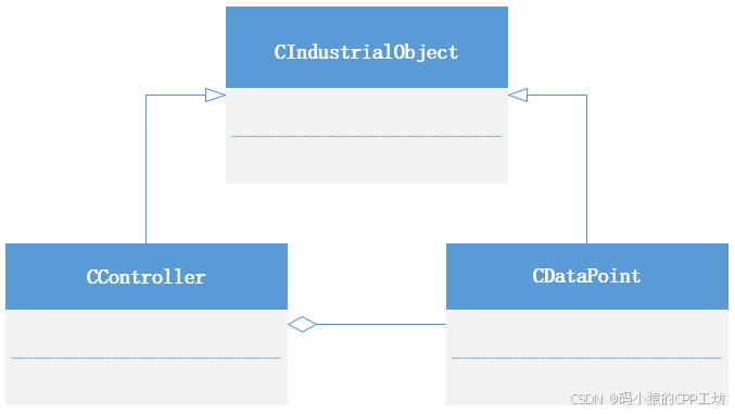 本应用案例中,仍采用设备及其数据对象之间的关联关系这一工业控制领域的应用场景,工业设备控制器CController和监测数据CDataPoint对象之间存在的从属和关联关系。
