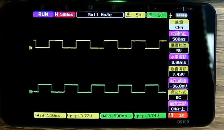 通道1(黄色波形)是相对延时,通道2(绿色波形)是绝对延时。