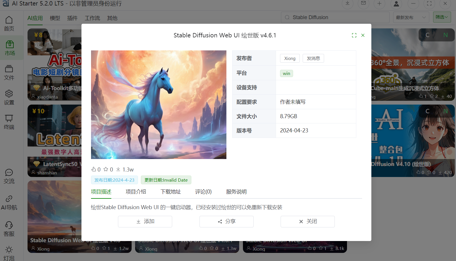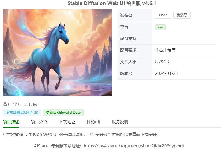 下载地址:【Stable Diffusion Web UI 绘世版 v4.6.1】https://ipv4.starter.top/users/share?fid=20\&type=0