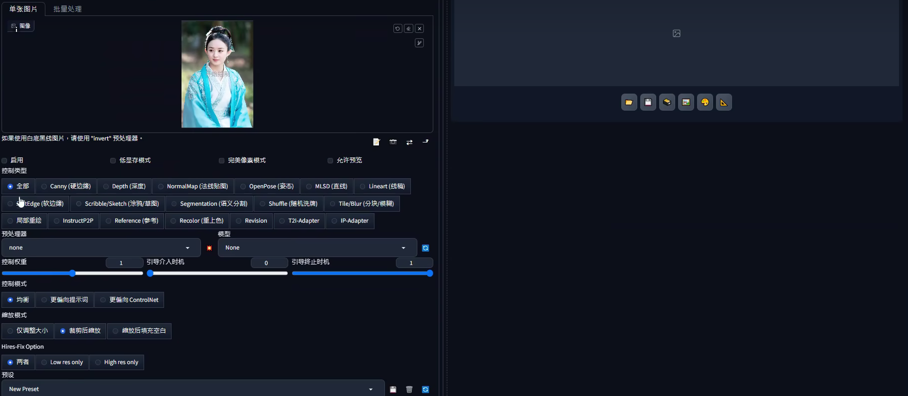 全量插件预置 :为了简化二次开发和功能扩展,整合包预装了 ControlNet 1.1、IP-Adapter、AnimateDiff 等核心插件,并完成了深度汉化,启动即是生产力。