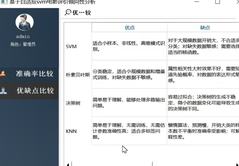 系统同时对于四种算法的优缺点进行了比较分析,具体四种算法优缺点的内容呈现如下图所示: