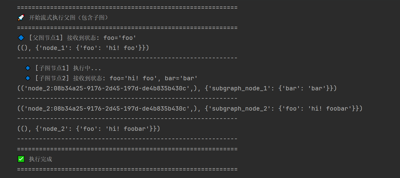 print(f" 🔹 [子图节点2] 接收到状态: foo='{state['foo']}', bar='{state['bar']}'")