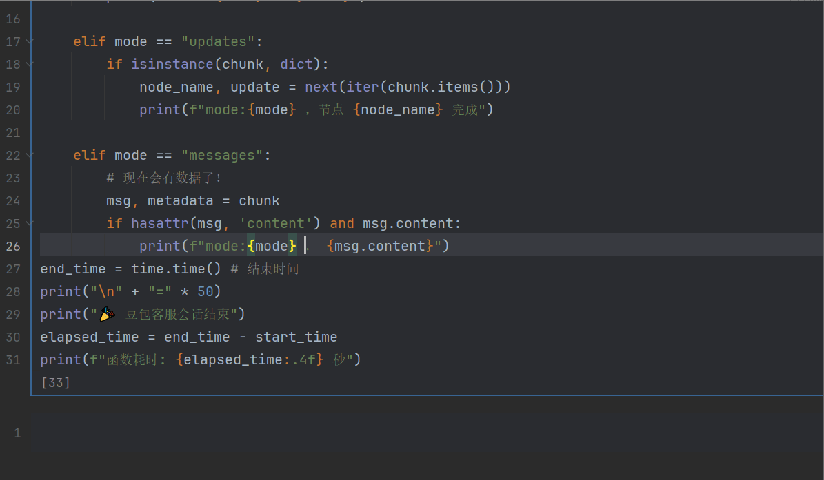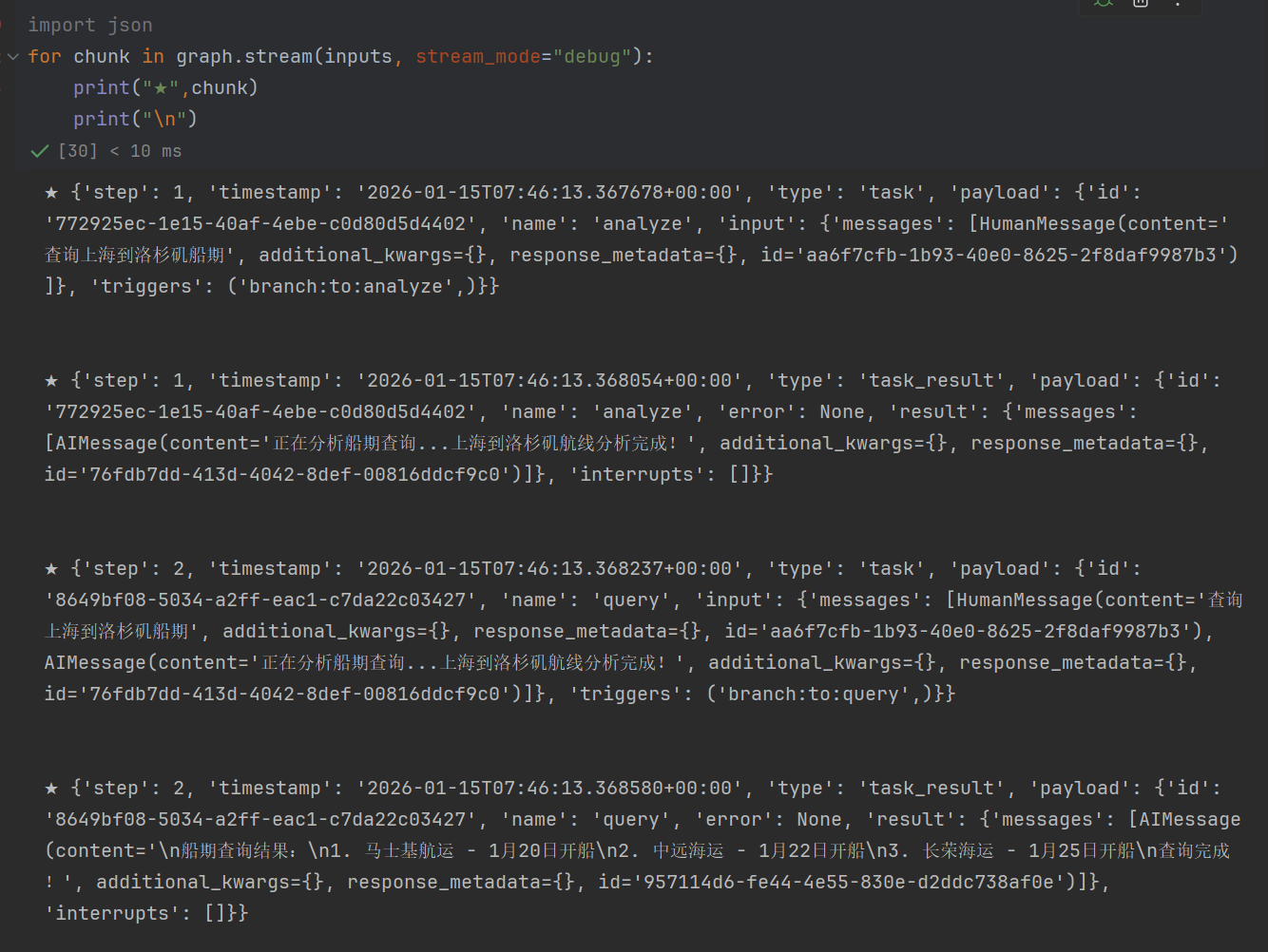 stream_mode="updates", # 流式模式:返回每个节点的状态更新