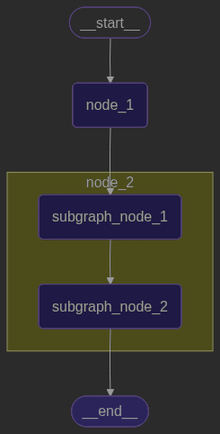 builder.add_node("node_2", subgraph) # 🔑 添加子图作为节点(子图会被当作一个节点)