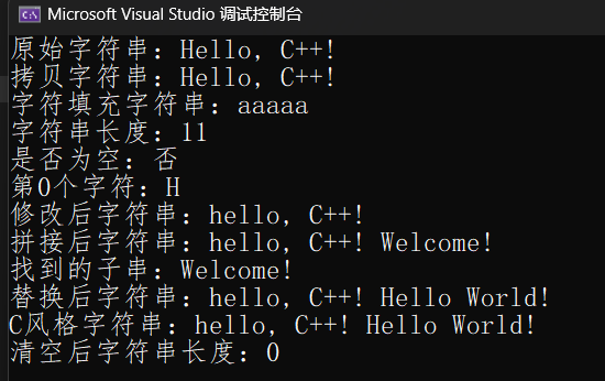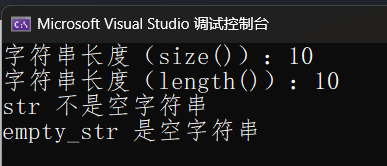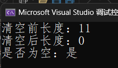 size():返回字符串的字符个数(推荐,语义更清晰,与其他 STL 容器保持一致)length():返回字符串的字符个数(历史遗留方法,与size()等价)empty():判断字符串是否为空,为空返回true,否则返回false(比size() == 0更高效)